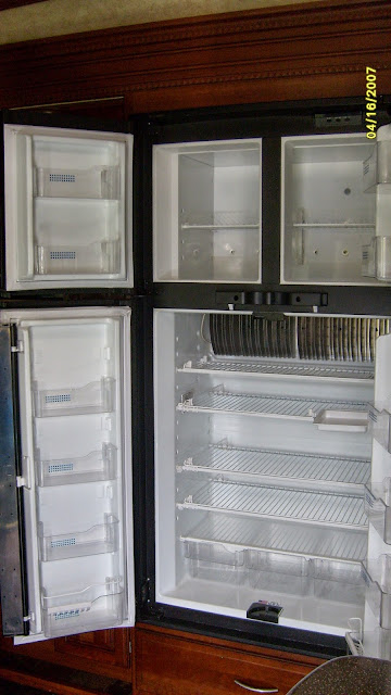 Also underneath is an adjustable flat screen LCD television with cable or satellite connections. It folds flat into that storage compartment for ease of storage while traveling.